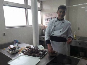Штанд со десерти, колачи и кифли подготвени од учениците.