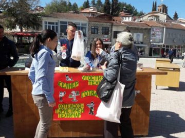 Штанд со десерти, колачи и кифли подготвени од учениците. Собраните парични средства од продажбата донирани за хуманитарни цели во Црвен крст.