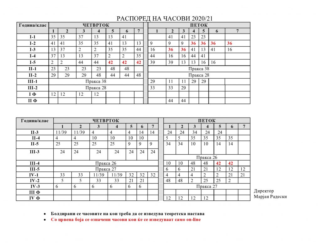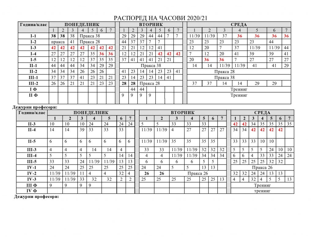 Драфт верзија на распоред на часови за учебната 2020/21 година